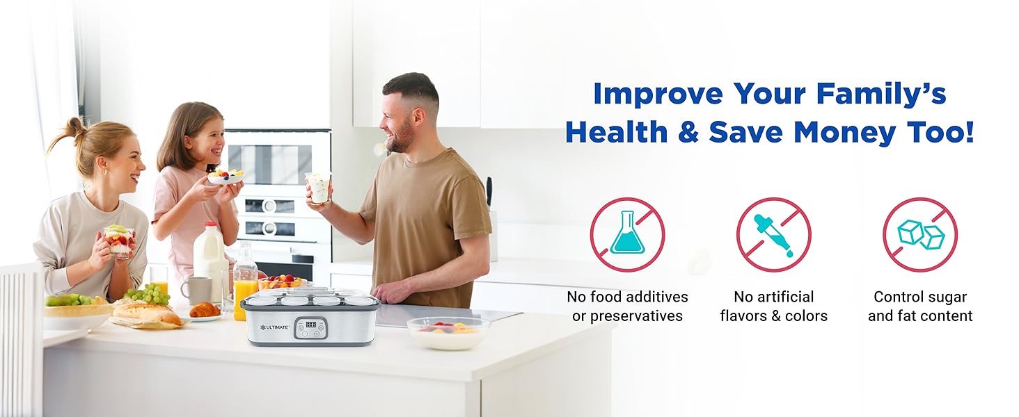 - 𝗔𝗱𝗷𝘂𝘀𝘁𝗮𝗯𝗹𝗲 𝗧𝗲𝗺𝗽𝗲𝗿𝗮𝘁𝘂𝗿𝗲 𝗖𝗼𝗻𝘁𝗿𝗼𝗹 & 𝗥𝘂𝗻 𝗧𝗶𝗺𝗲 - 𝟭𝟬𝟬% 𝗕𝗣𝗔-𝗙𝗥𝗘𝗘 - The Ultimate Probiotic Yogurt Maker has adjustable temperature settings from 68-131°F and can run for up to 48 hours, ensuring the perfect environment to culture your yogurt for tons of probiotics. The machine is 100% BPA free and comes with two large glass containers with BPA free lids to ensure the health of you and your family.